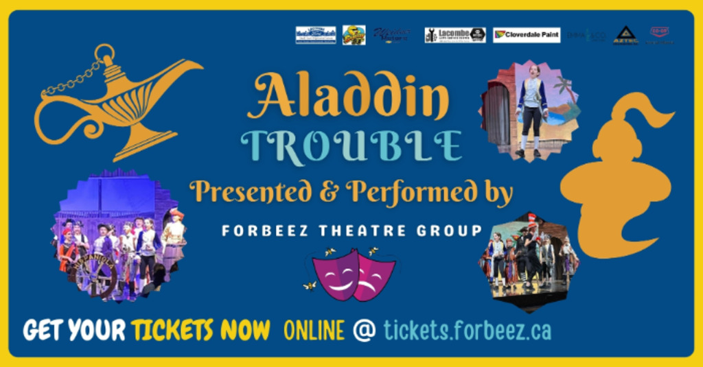 Since September, Our cast and crew have been working tirelessly to present our 3rd-ever spectacular show. Our cast consists of about 40 young actors from Lacombe and Central Alberta. Aladdin Trouble is a pantomime following the iconic tale we all know and love. We invite everyone of all ages who can attend. Our production consists of 4 shows at the Lacombe Performing Arts Centre (LPAC), With two matinees at 2:00 PM on Saturday and Sunday, April 26 and 27, and two evening performances at 7:00 PM on Friday and Saturday, April 25 and 26. The show has a run time of 90 minutes, including an intermission with a raffle for some door prizes and a concession. Tickets are available through our website: https://forbeez.ca/tickets, where you will find more information. Tickets are $15 for seniors (60+) and children (0-12), and for adults (13+), they are $20.