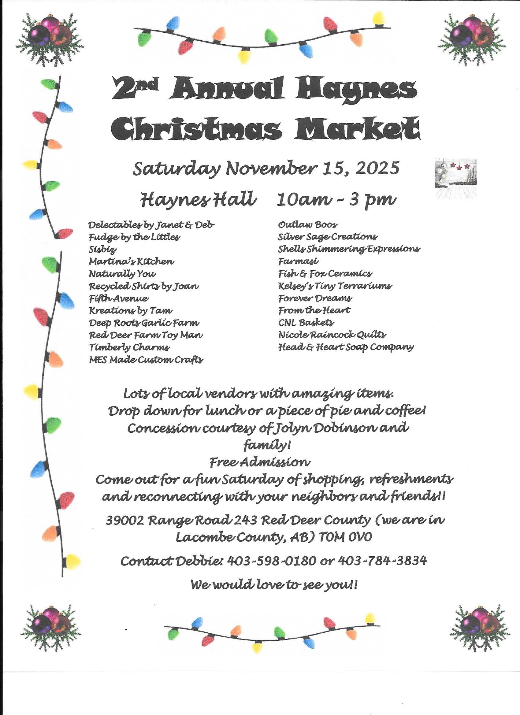 Lots of local vendors with amazing items. Come check it out and support local. Drop by for lunch or a piece of pie and coffee. Concession courtesy of Jolyn Dobinson and family. Free admission. Come out for a fun Saturday of shopping, refreshments and reconnecting with friends and neighbors. We would love to see you!