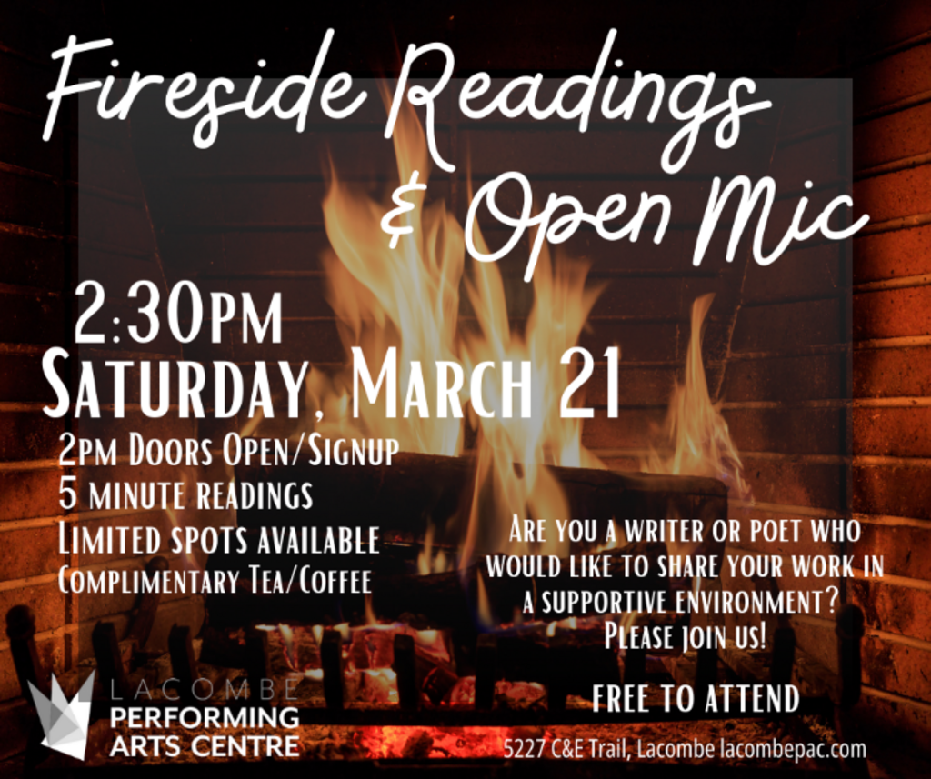 Immerse yourself in local literary talent! Fireside Readings is an opportunity for local writers to come together to share work with our community.