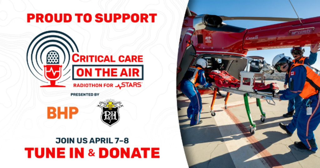 On April 7 and 8, 2026, we invite you to support Critical Care on the Air Radiothon, raising critical funds for STARS. Last year, STARS flew 61 missions to Red Deer, funds from this event will ensure STARS can continue to be there for the next patient in need.